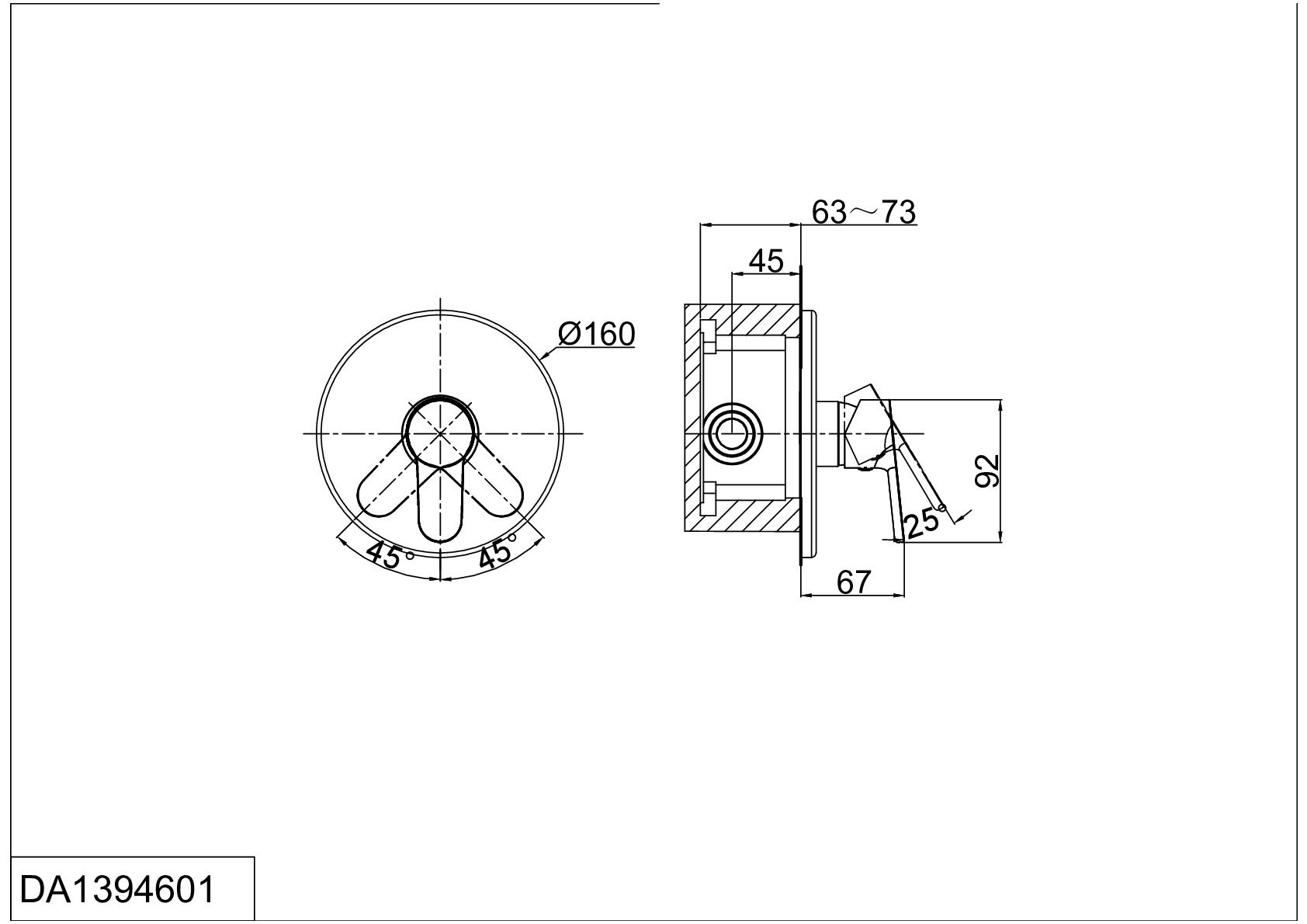 Встраиваемый смеситель для душа DQ Rhein Marx хром DA1394601