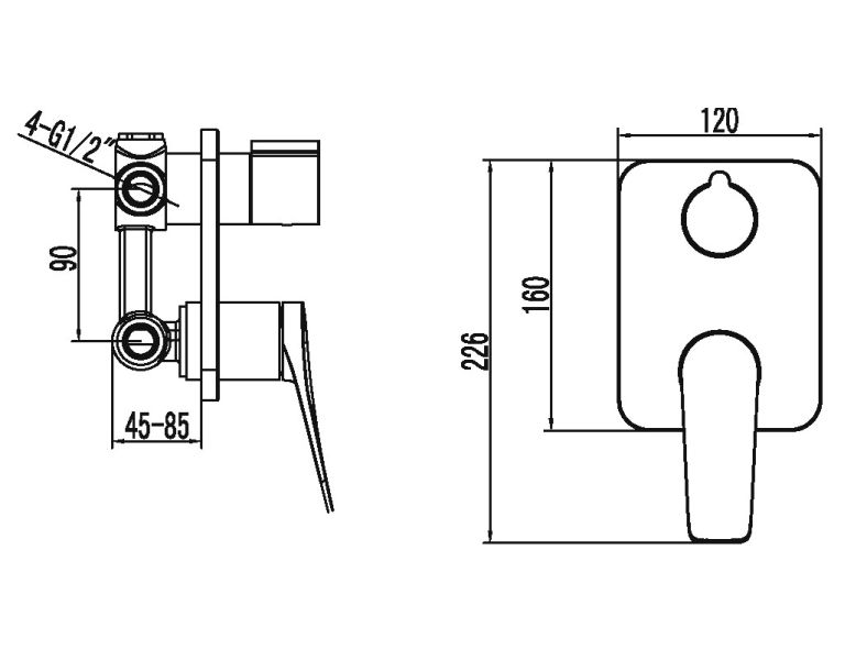 - 2-позиционный картриджный преключатель (угол поворота - 120°)