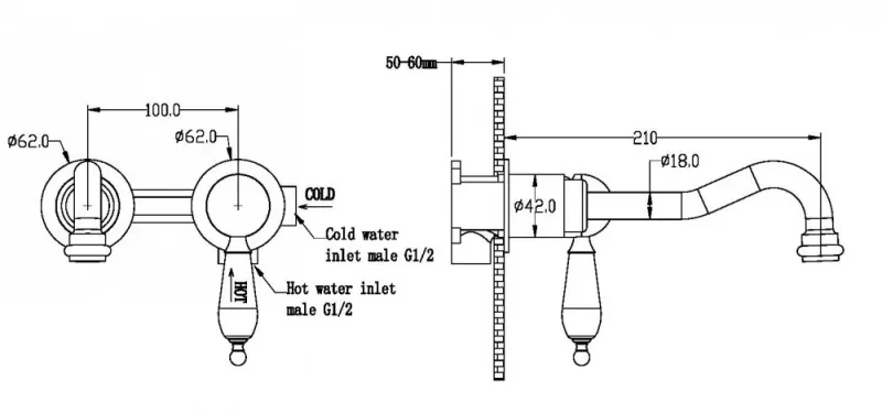 Изделие изготовлено из высококачественной латуни, обеспечивающей долговечность и коррозионную стойкость. Смеситель оснащён фиксированным изливом длиной 21 см и высокоточным керамическим картриджем, который гарантирует плавную регулировку потока воды и исключает протечки. Для установки требуются два монтажных отверстия, подключение осуществляется через стандартные подводки 1/2″.