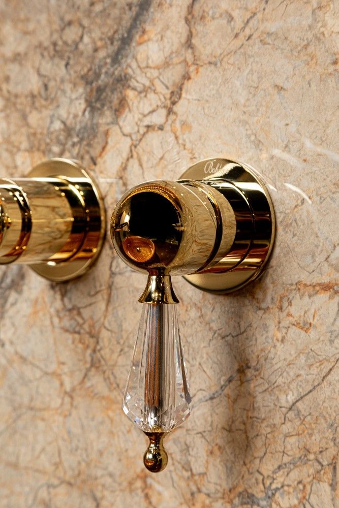 Смеситель Boheme Imperiale Ripresa 327 — это элегантное и технологичное решение для раковины, выполненное в ретро-стиле с элементами роскоши. Модель предназначена для встраиваемого монтажа и отличается изысканным дизайном, сочетающим плавные округлые формы, золотое покрытие и декоративные вставки из хрусталя, что придаёт интерьеру особый шарм и статусность.