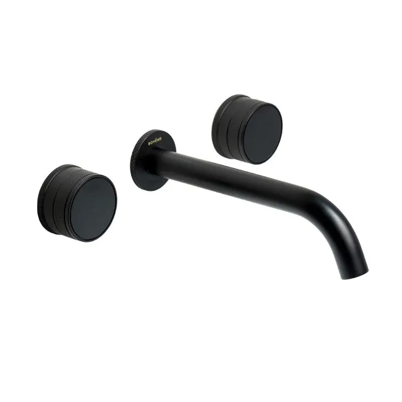 Смесители доступны в цветах: золото, матовое золото, хром, никель, графит и черный. Коллекция представлена смесителем для раковины, настенным смесителем для раковины и отлично дополняется встроенными душевыми системами Fusion и Zodiac Смеситель для раковины Boheme Prestige 152-2-B-PR, встраиваемый, цвет черный