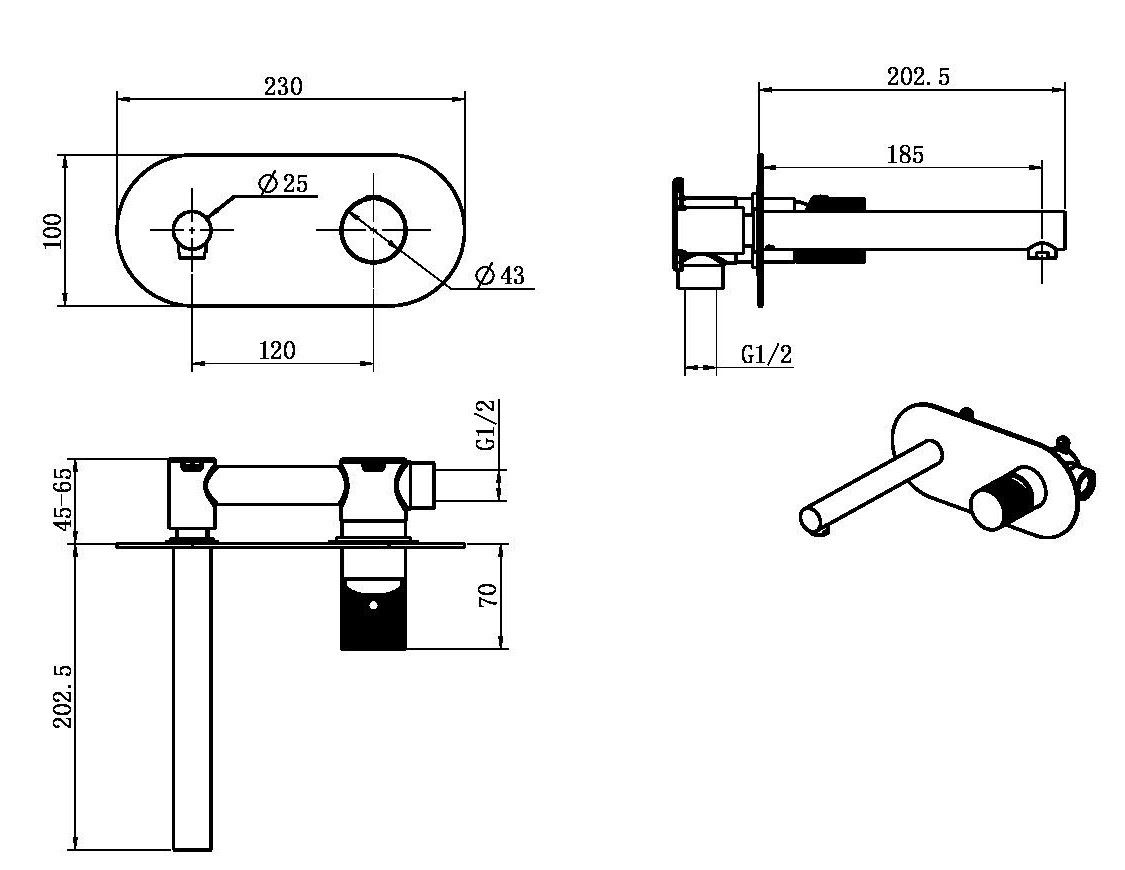 Встраиваемый смеситель для раковины Boheme Stick 125-CRCR.2 хром купить