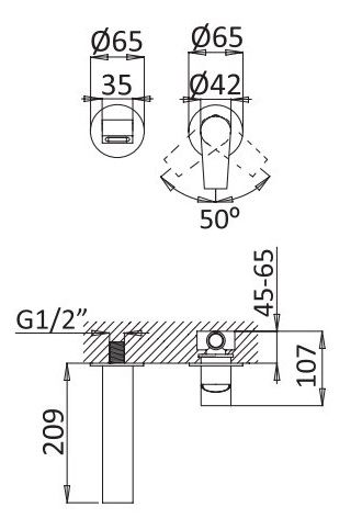 • Высота смесителя: