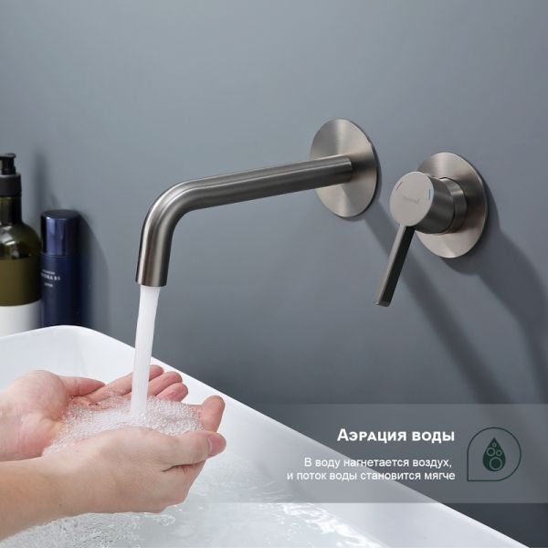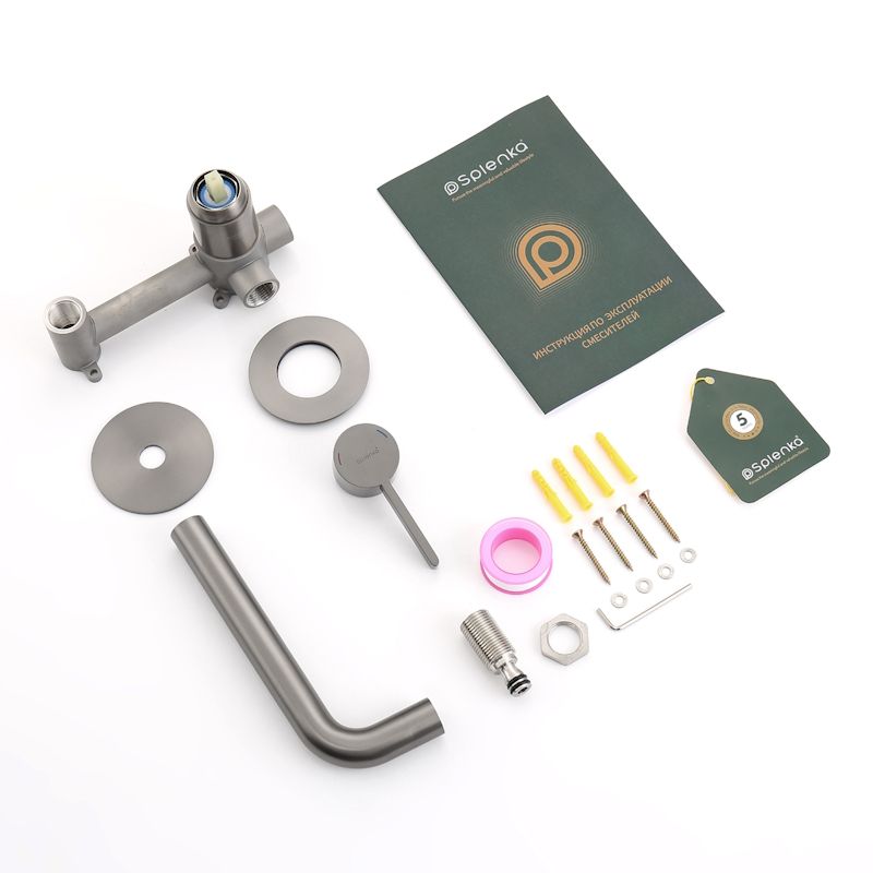 Смеситель для раковины Splenka S221.11.09, графит. Смеситель для раковины встраиваемый - это качественное и функциональное сантехническое оборудование от производителя Splenka. Если у вас есть желание обновить свою ванную комнату, то данный смеситель станет прекрасным выбором для вас. Он сочетает в себе стильный дизайн и высокие технические характеристики, которые позволят вам комфортно пользоваться умывальником. Его удлиненный излив обеспечит удобство и комфорт при использовании. Благодаря керамическому картриджу, вы сможете регулировать поток воды с легкостью, получая идеальную температуру воды для своих нужд. Смеситель имеет функцию скрытого монтажа, что делает его эстетичным и современным. Этот смеситель оснащен надежной и долговечной конструкцией, что гарантирует его долгий срок службы. Комплектация смесителя включает все необходимые элементы для установки, что позволяет вам приступить к использованию оборудования сразу же после покупки. Материал - нержавеющая сталь. Гарантия 5 лет.