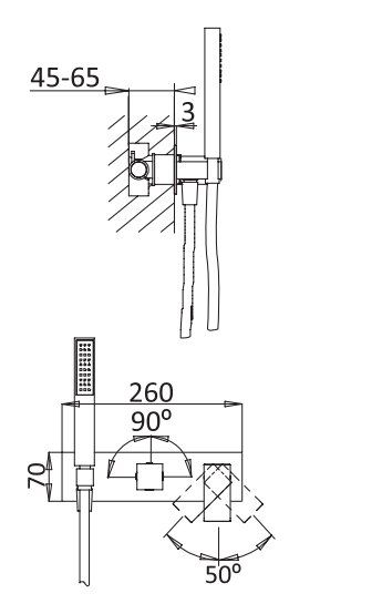 Оснащение: душевой шланг, душевая лейка, держатель,внутренняя часть, дивертор