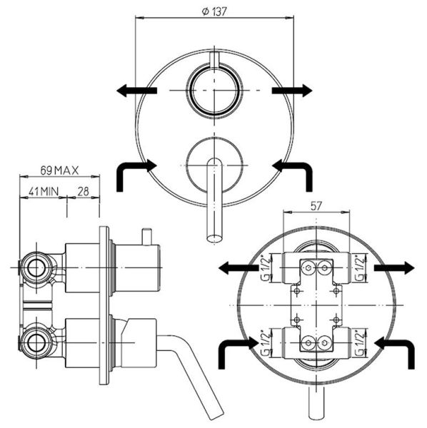- Встраиваемый монтаж эстетично скрывает все соединения, оставляя в доступе только рычаг управления, что значительно экономит занимаемое пространство.