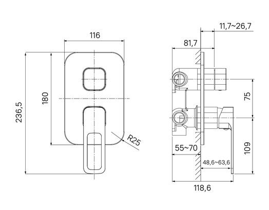 Встраиваемый в стену смеситель Slide для ванны или душевой зоны – стильное современное решение для ванной комнаты. Предназначен для подключения трех душевых аксессуаров на ваш выбор.