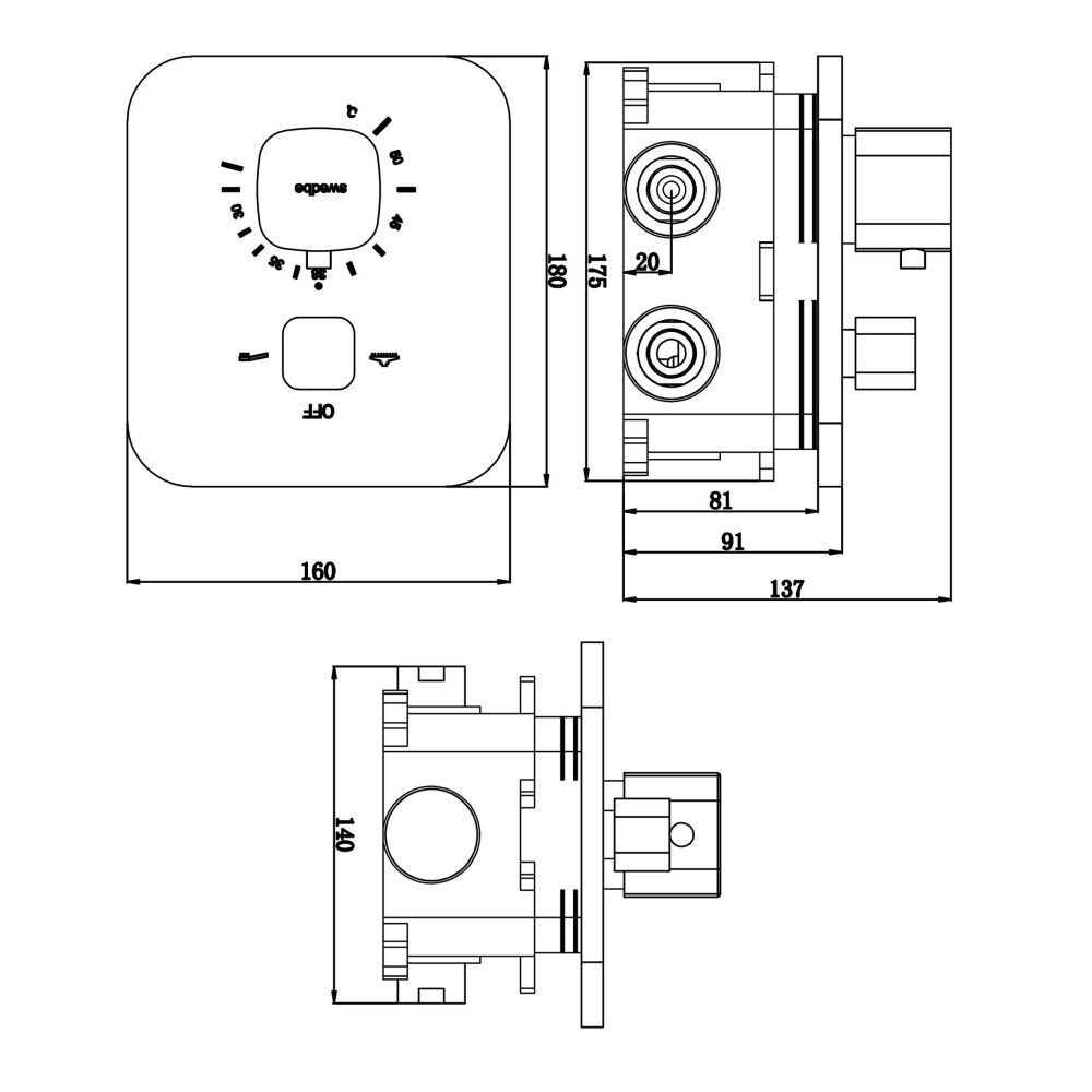 Встраиваемый смеситель Swedbe Platta 9031B термостатический подключение на два выхода чёрный купить