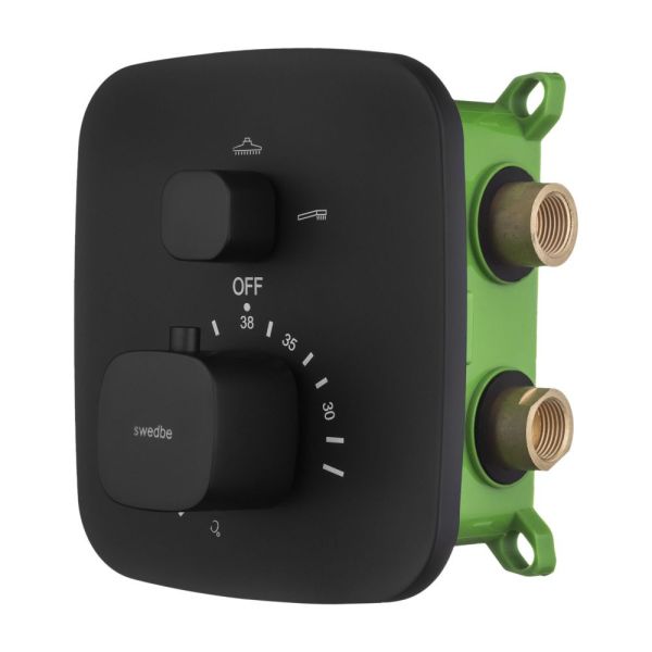 Встраиваемый смеситель Swedbe Platta 9032B термостатический подключение на три выхода чёрный