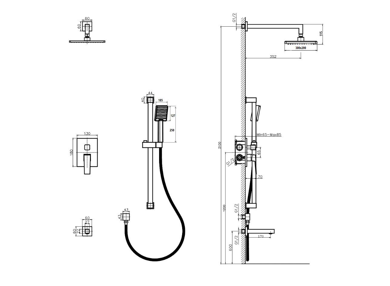 Встроенная душевая система RUSH Thira (TR3635-60Grey)