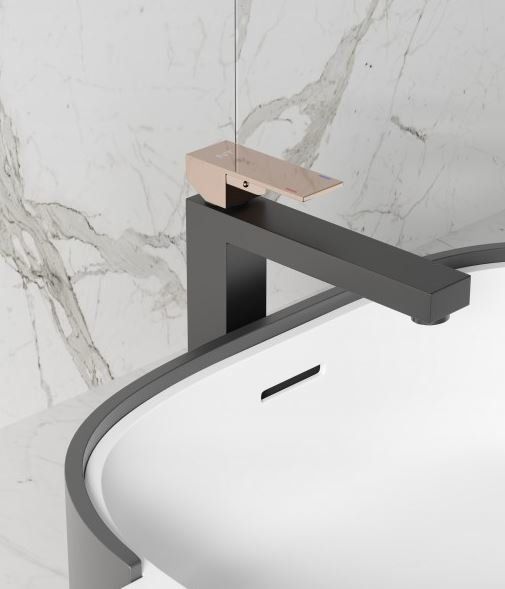 Высокий смеситель для раковины NT Bagno Adigo HBG NT9001HBG чёрный/розовое золото купить