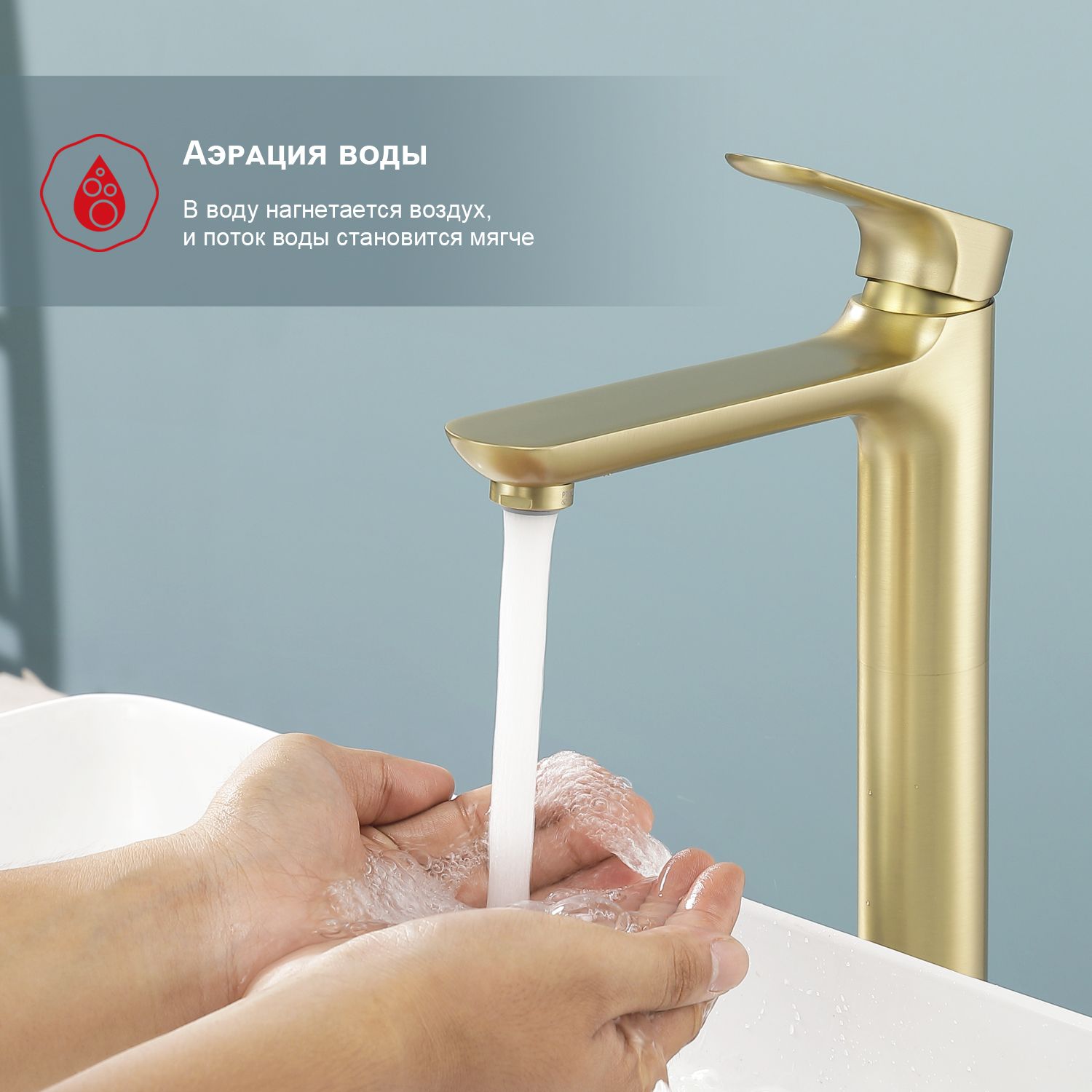 Высокий смеситель для раковины Raglo R03.15.03 золотой сатин