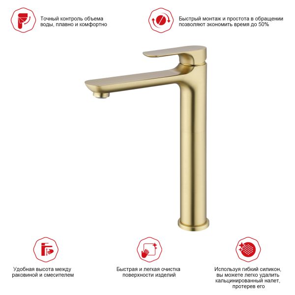 Высокий смеситель для раковины Raglo R03.15.03 золотой сатин купить