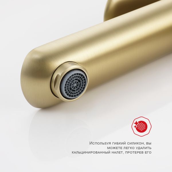 Смеситель для раковины Raglo R03.15.03, сатин золотой. Смеситель для раковины RAGLО имеет повышенную прочность корпуса. Соответствует требованиям международного стандарта. Одна рукоять для регулировки воды. Аэратор гарантирует одинаковый поток воды, сеточка рассеивает напор, вода смягчается. Смеситель устанавливается на гайке, нижняя часть смесителя вставляется в отверстие для монтажа и затягивается гайкой для фиксации. Данный смеситель для умывальника имеет надежный стационарный излив, не меняющий своего положении. Смеситель прекрасно смешивает потоки воды, а помимо этого обладает невысоки показателем шумов. Быстрый монтаж. Гарантия производителя 7 лет. Отлично подходит для раковины-чаши. Отдельно стоящий смеситель для накладной раковины.