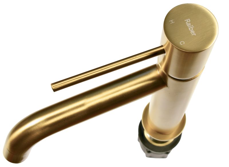 Высокий смеситель для раковины Raiber Graceful RPG-002 золото матовое