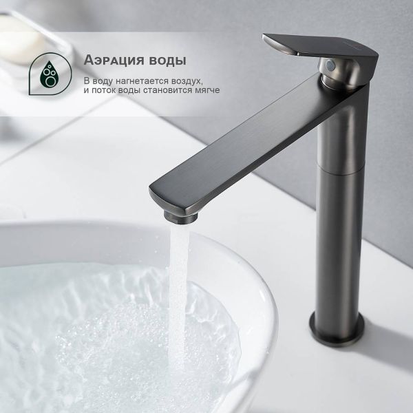 Высокий смеситель для раковины Splenka S30.15.09 графит