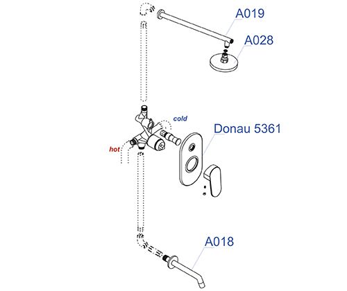 Wasserkraft А13028 Встраиваемый комплект для ванны с изливом и верхней душевой насадкой