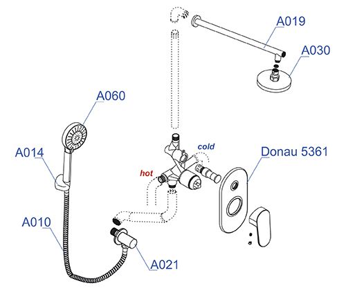 Wasserkraft А14030 Встраиваемый комплект для душа с верхней душевой насадкой и лейкой