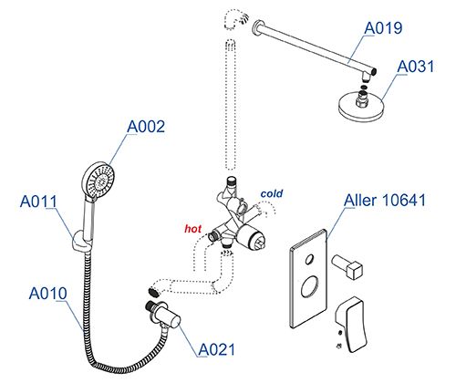 Wasserkraft A14131 Встраиваемый комплект для душа с верхней душевой насадкой и лейкой