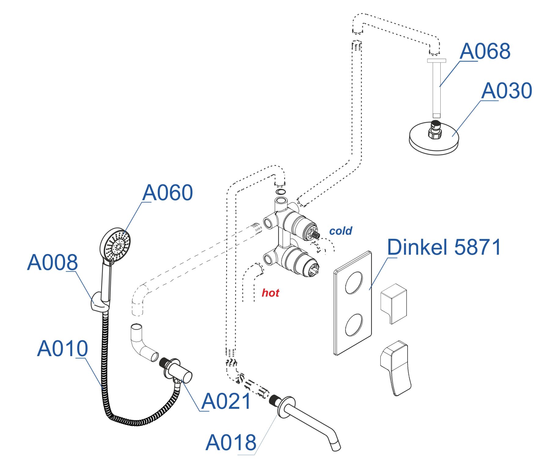 Wasserkraft А175868 Встраиваемый комплект для ванны с верхней душевой насадкой, лейкой и изливом