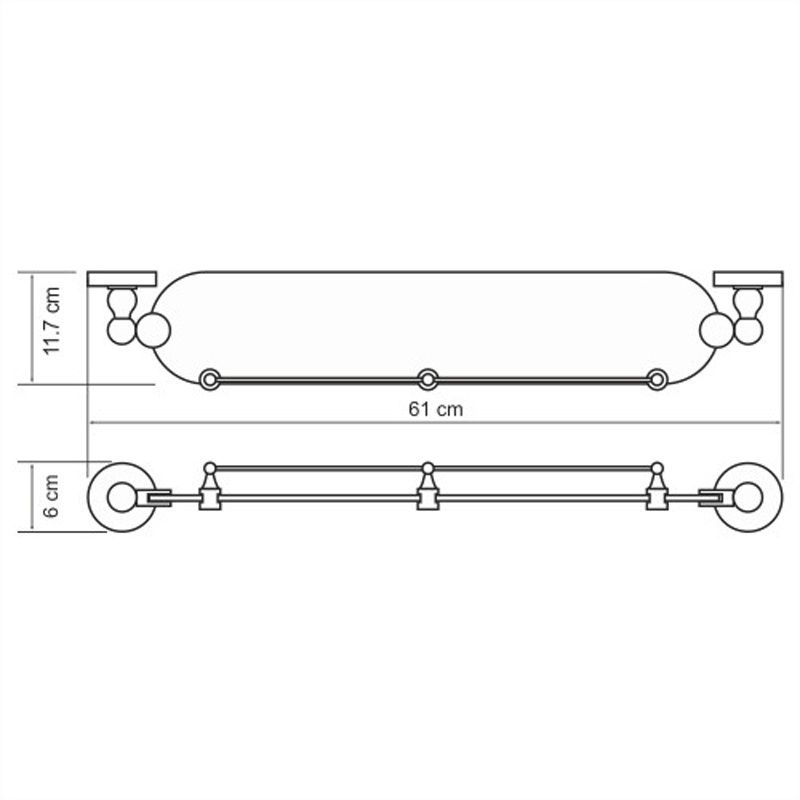 WasserKRAFT Полка стеклянная с бортиком K-8544Размер: Ш610 х Г117 х В60 ммМонтаж: настенныйЦвет держателя: хром, акриловая вставка "горный мрамор"Полка: матовое стеклоТолщина закаленного стекла: 6 ммМатериалы: металл, акрил, хромоникелевое покрытие, уплотнительные пластиковые кольца, закаленное матовое стекло