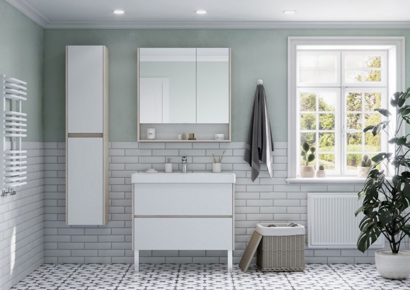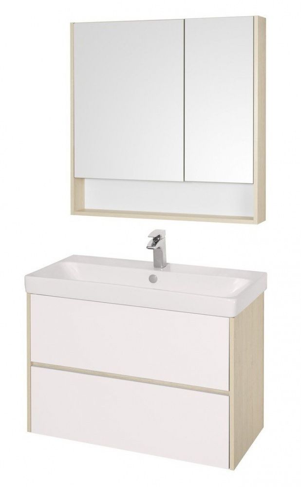 Зеркальный шкаф Акватон Сканди 90см белый/дуб верона 1A252302SDB20