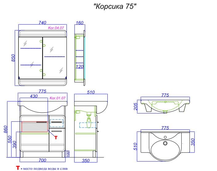 Зеркальный шкаф Aqwella Корсика Kor.04.07 купить