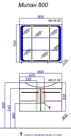 Зеркальный шкаф Aqwella Милан Mil.04.08