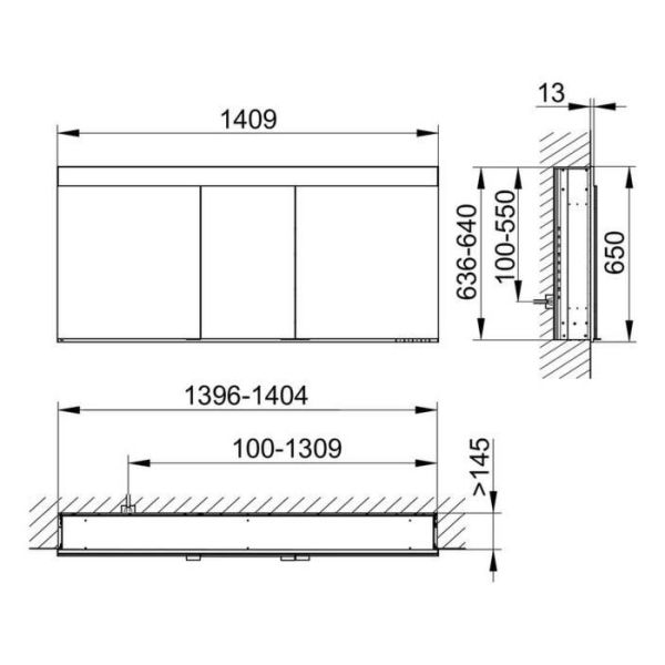 Зеркальный шкаф Keuco Edition 21503171301 141 смЗеркальный шкаф,для встраиваемого монтажа,бесступенчатая настройка тона подсветки от 2700Кельвин (те