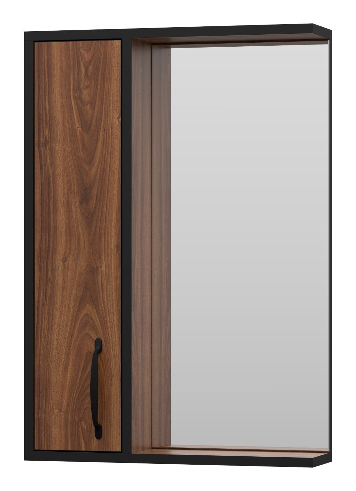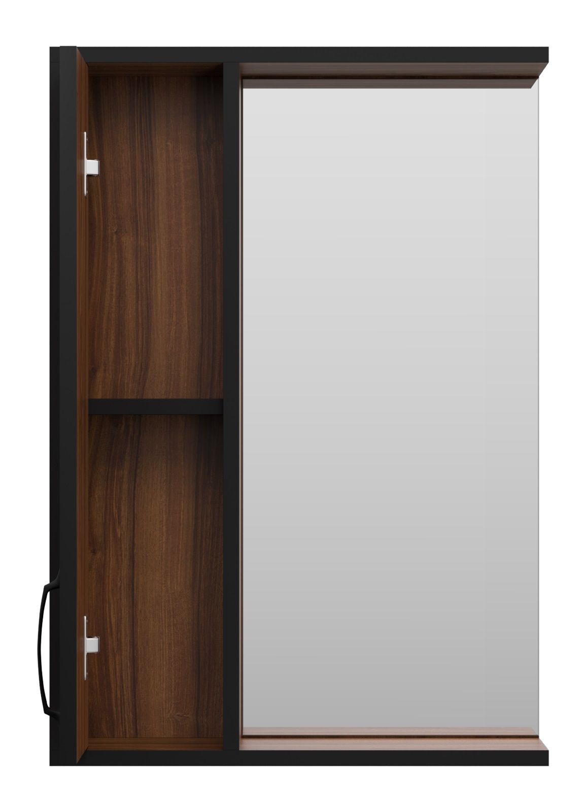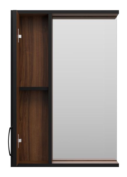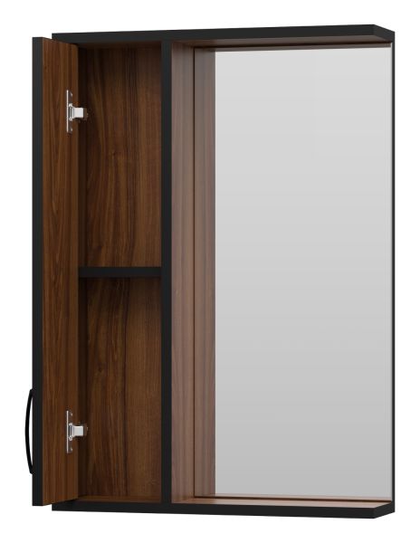 Зеркальный шкаф Misty Кедр 50см левый чёрный/орех