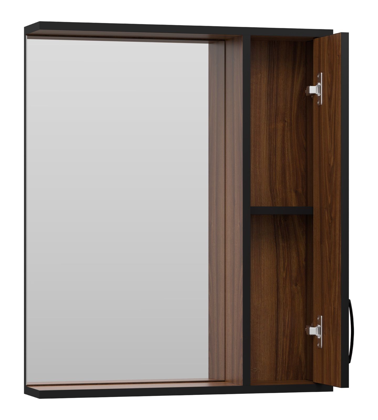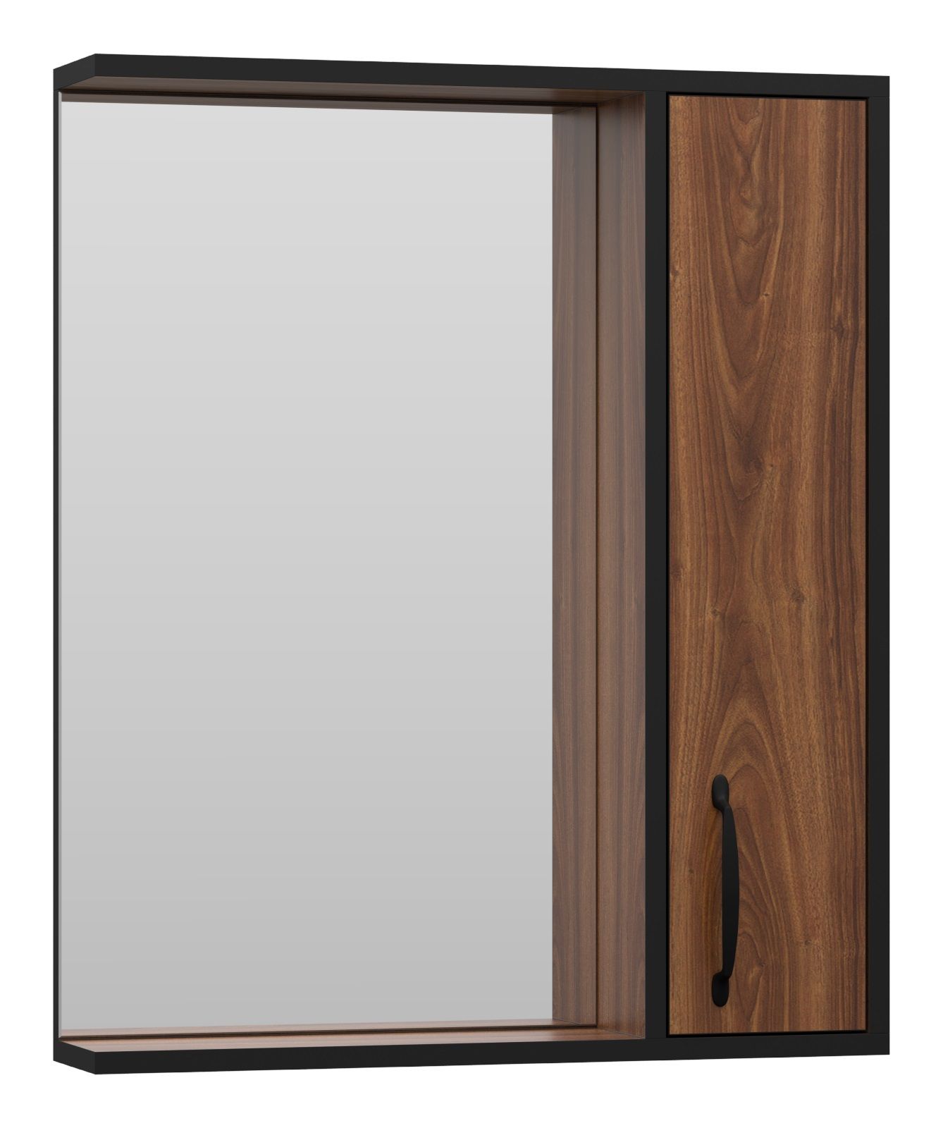 Зеркальный шкаф Misty Кедр 60см правый чёрный/орех