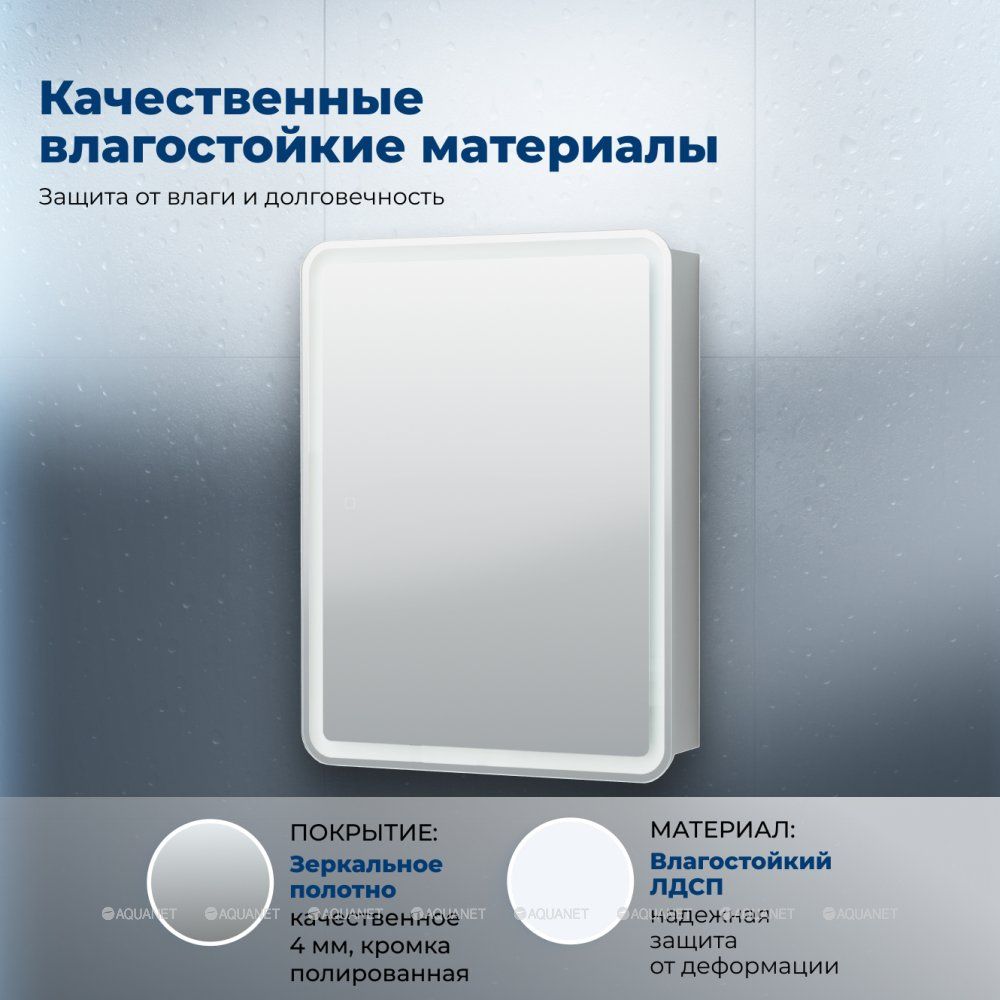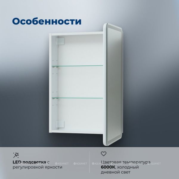 Зеркало-шкаф Aquanet «Оптима» 60 с LED-подсветкой — универсальное дополнение любых современных ванных комнат. Навесной шкафчик монтируют на стене над умывальным пространством. Сенсорный выключатель подсветки расположен прямо на зеркале. При ее включении зеркало приобретает белую подсветку. Фасад изготовлен из пластика, а корпус — из ЛДСП. Распашная дверца открывается и закрывается плавно, без хлопков. Внутри конструкции две стеклянные полочки, которые разделяют пространство для хранения гигиенических средств. Размеры 600*800*147 мм удобны для стандартного расположения зеркала над раковиной в санузле. Зеркальный шкафчик хорошо сочетается со многими современными стилями в интерьере, например минимализм, хай-тек или эклектика.