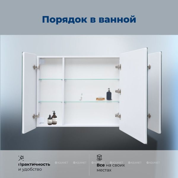 Зеркальный шкаф Aquanet Оптима 120 с LED подсветкой — это умное решение для вашей ванной. Он сочетает элегантный внешний вид, продуманную эргономику и передовые технологии. С ним ваше утро станет ярче, а вечер — комфортнее.