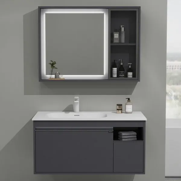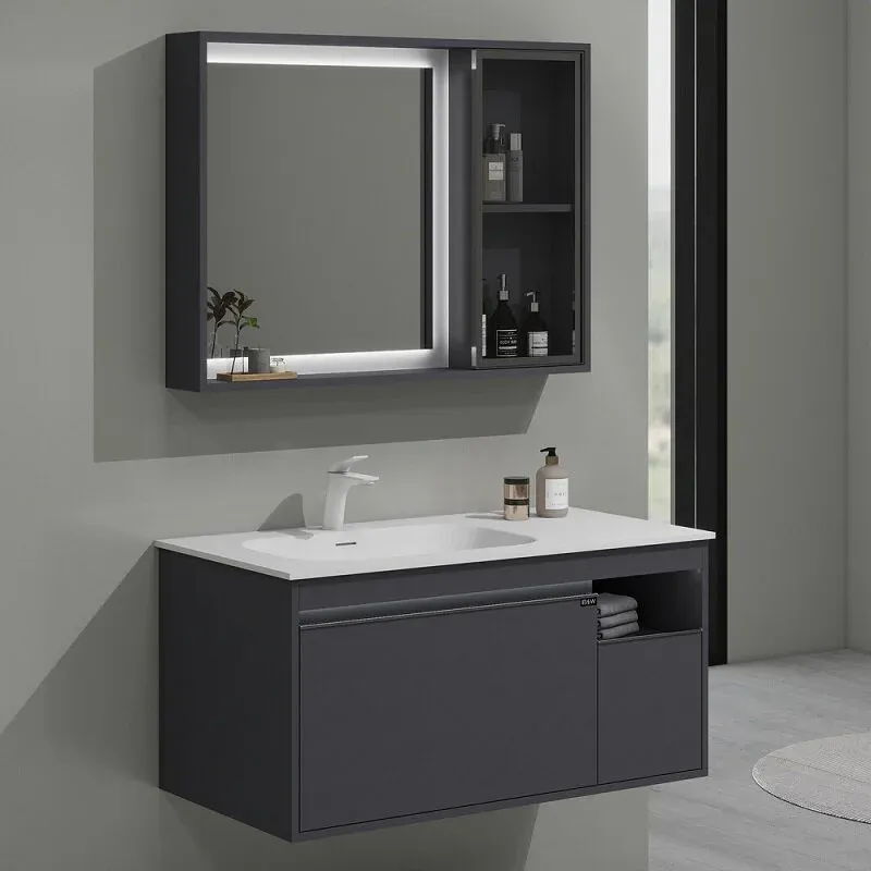 Новинка датского бренда Black&White в габаритных размерах 100×52 см.В концепции изделия лежит свободное пространство для хранения косметических принадлежностей, а также трендовое направление в создании мебели для ванной комнаты – смещение чаши для расширения полезной площади на столешнице. Корпус изготовлен из девятислойной фанеры и окрашен эмалью серого цвета, такая комбинация позволяет сделать корпус максимально влагостойким. Раковина — столешница производится из искусственного камня на основе минералов-Corian. Материал не обладает пористостью, а также приятен тактильно. Фурнитура для открывания ящиков установлена компании UniHopper с доводчиками. U 910 продукт с широким функционалом и эргономикой, который наполнит ванную комнату скандинавским стилем.