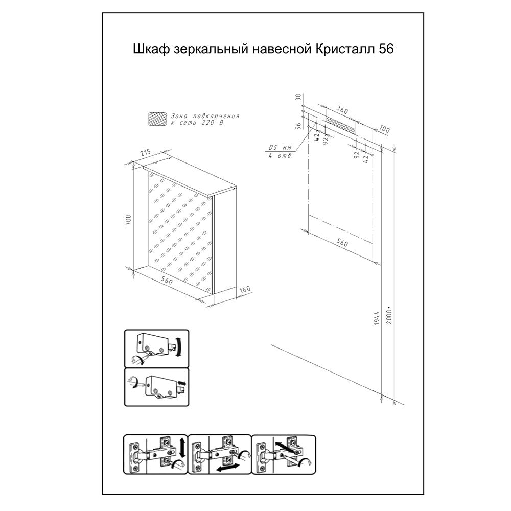 Зеркальный шкаф с подсветкой Бриклаер Кристалл 4627125417221 56 см дуб гранж песочный купить