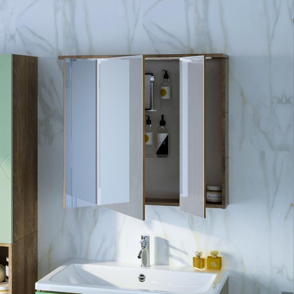 Зеркальный шкаф с подсветкой Бриклаер Кристалл 4627125417238 75 см дуб гранж песочный