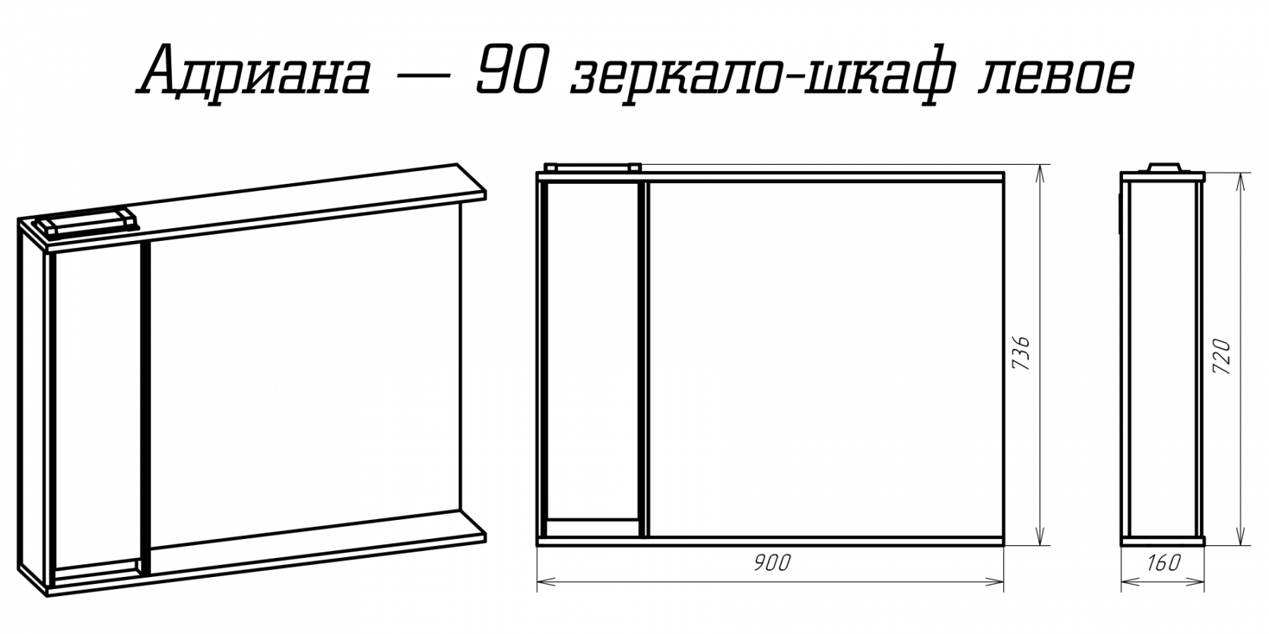Зеркальный шкаф с подсветкой Misty Адриана левый 90см дуб Вотан/белый