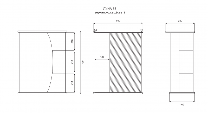 Зеркальный шкаф с подсветкой Misty Луна 55см правый белый