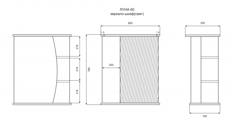 Зеркальный шкаф с подсветкой Misty Луна 60см левый белый