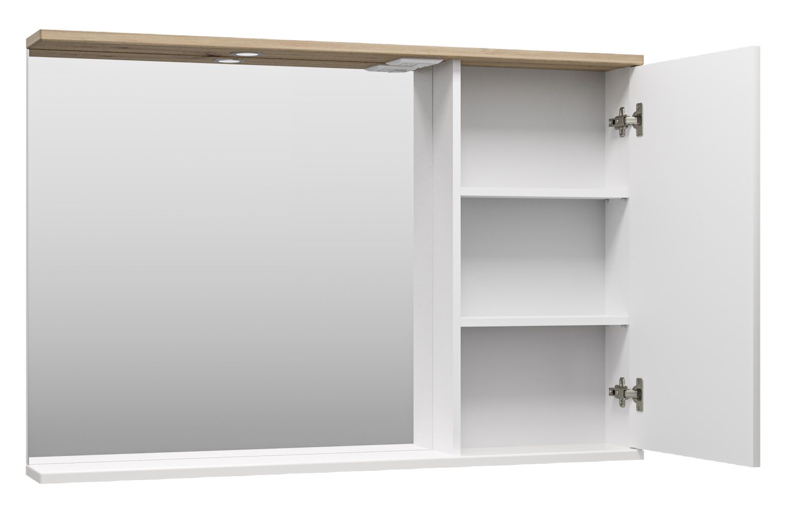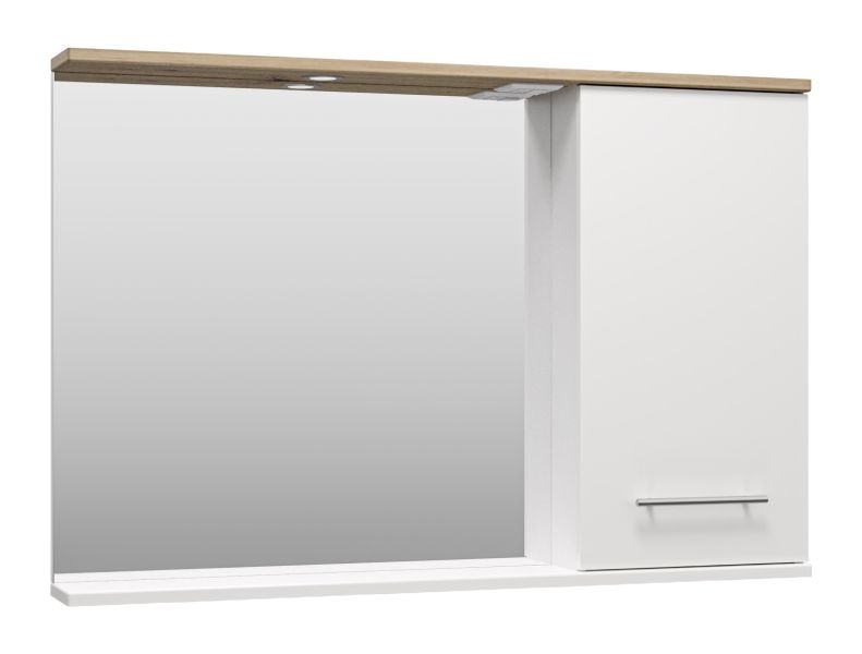 Зеркальный шкаф с подсветкой Misty Респект 120см правый белый/дуб Артизан