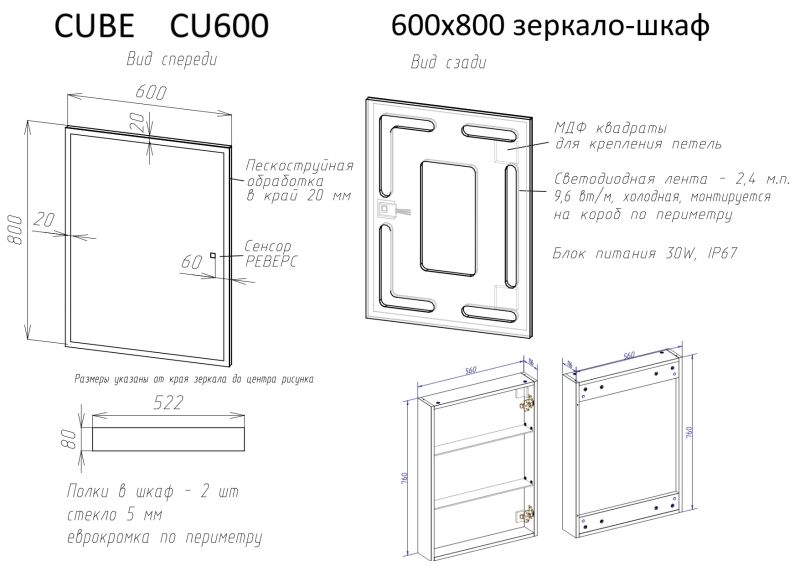 Зеркальный шкаф с подсветкой Sancos Cube CU600 80см белый