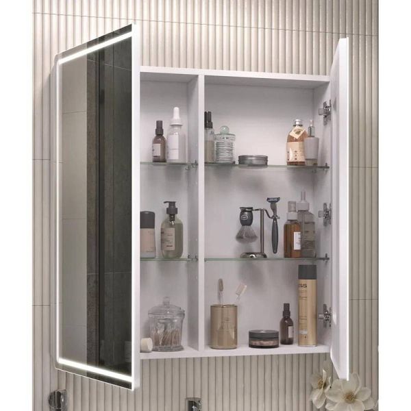 Зеркальный шкаф VIGO Geometry 118, 80 см. 2 дверцы, петли с механизмом доводчика, 4 стеклянных полки, светодиодная подсветка по периметру, бесконтактное включение (на взмах).