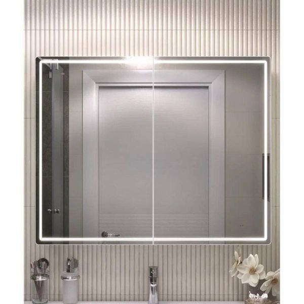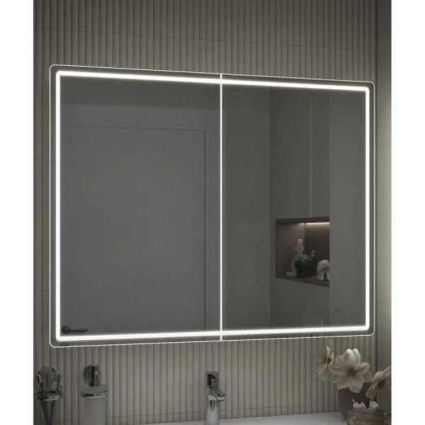 Зеркальный шкаф VIGO Geometry 119, 100 см. 2 дверцы, петли с механизмом доводчика, 4 стеклянных полки, светодиодная подсветка по периметру, бесконтактное включение (на взмах).