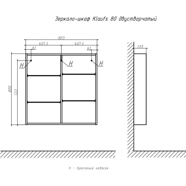Зеркальный шкаф Velvex Klaufs, 60 см