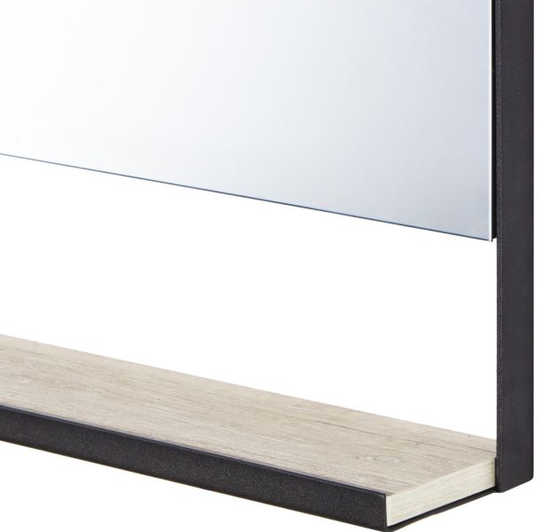 Чтобы оформить зону в едином стиле, в дополнение к тумбе-умывальнику, обратите внимание на прямоугольное зеркало 100 из коллекции AQUATON ЛОФТ Урбан на подложке из влагостойкой плиты, обрамленное по периметру металлическим профилем и полочкой с ограничителем, который препятствует падению предметов.