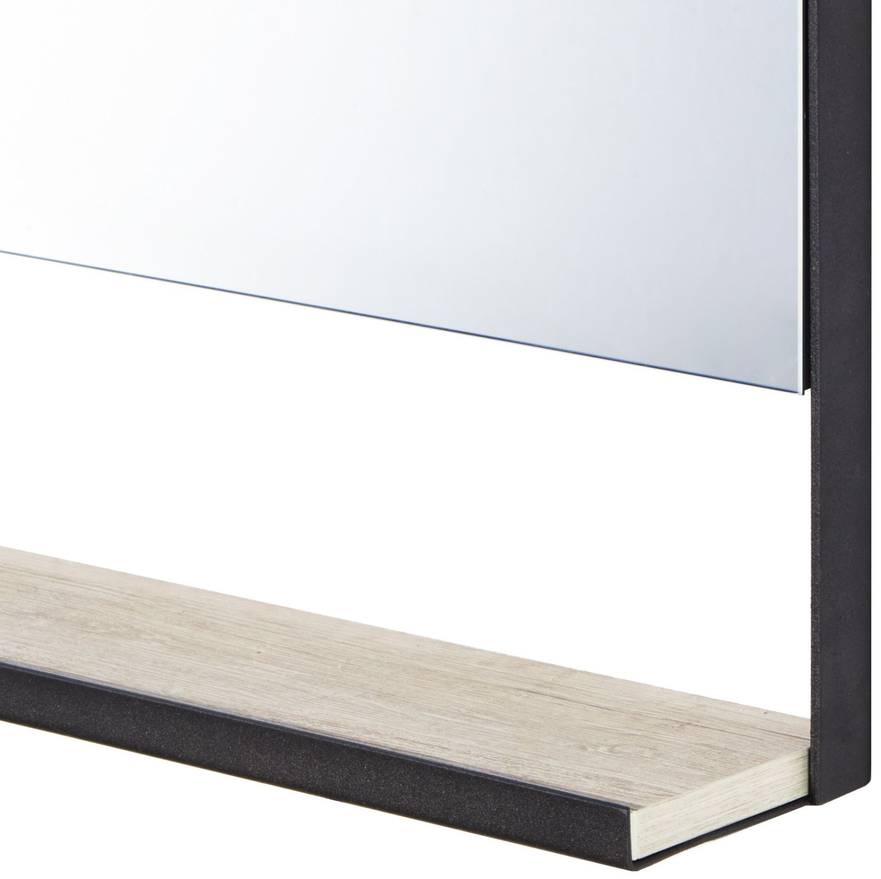 Чтобы оформить зону в едином стиле, в дополнение к тумбе-умывальнику, обратите внимание на прямоугольное зеркало 65 из коллекции AQUATON ЛОФТ Урбан на подложке из влагостойкой плиты, обрамленное по периметру металлическим профилем и полочкой с ограничителем, который препятствует падению предметов.