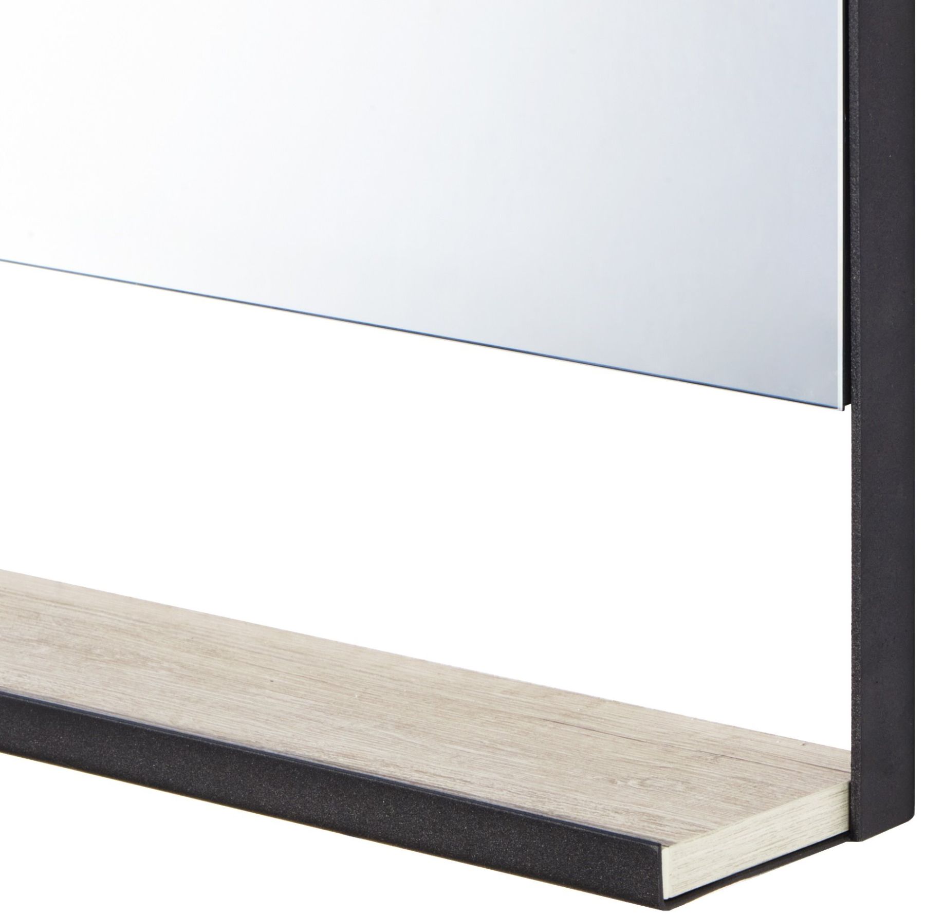 Чтобы оформить зону в едином стиле, в дополнение к тумбе-умывальнику, обратите внимание на прямоугольное зеркало 80 из коллекции AQUATON ЛОФТ Урбан на подложке из влагостойкой плиты, обрамленное по периметру металлическим профилем и полочкой с ограничителем, который препятствует падению предметов.