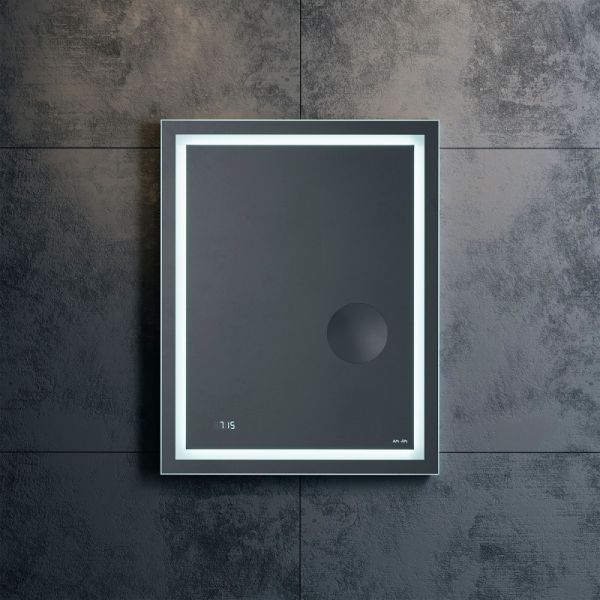 Скрытый механический выключатель сохраняет эстетическую целостность дизайна зеркала, а также гарантирует отсутствие отпечатков пальцев на зеркальном полотне. Зеркальное полотно премиального качества производства Бельгии. Гарантия 3 года.
