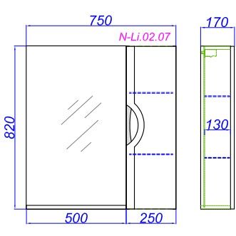 Зеркало Aqwella Н-Лайн N-Li.02.07 со шкафчиком