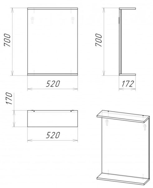 Габариты (ШxВxГ): 520x700x172 мм.